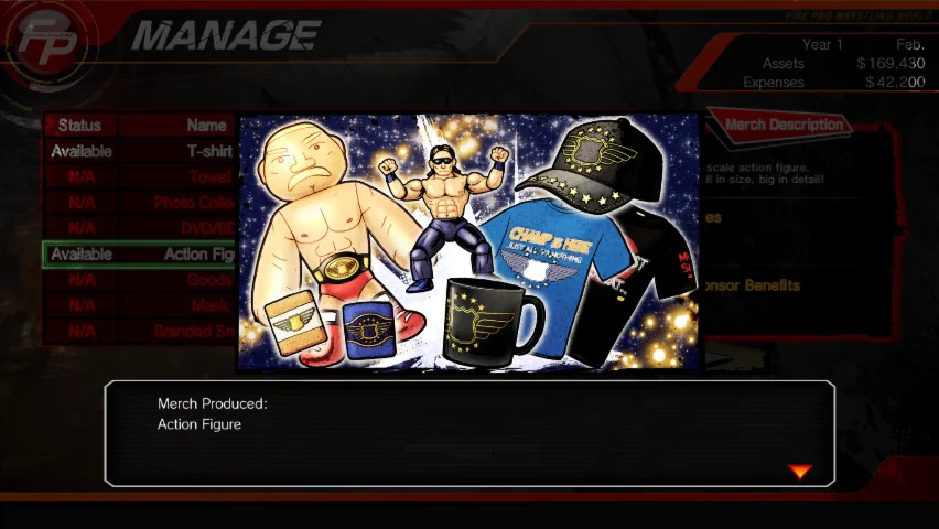 Call the shots as manager of your own pro wrestling promotion! Build up your team of talent from local heroes to living legends. The world is yours for the taking.