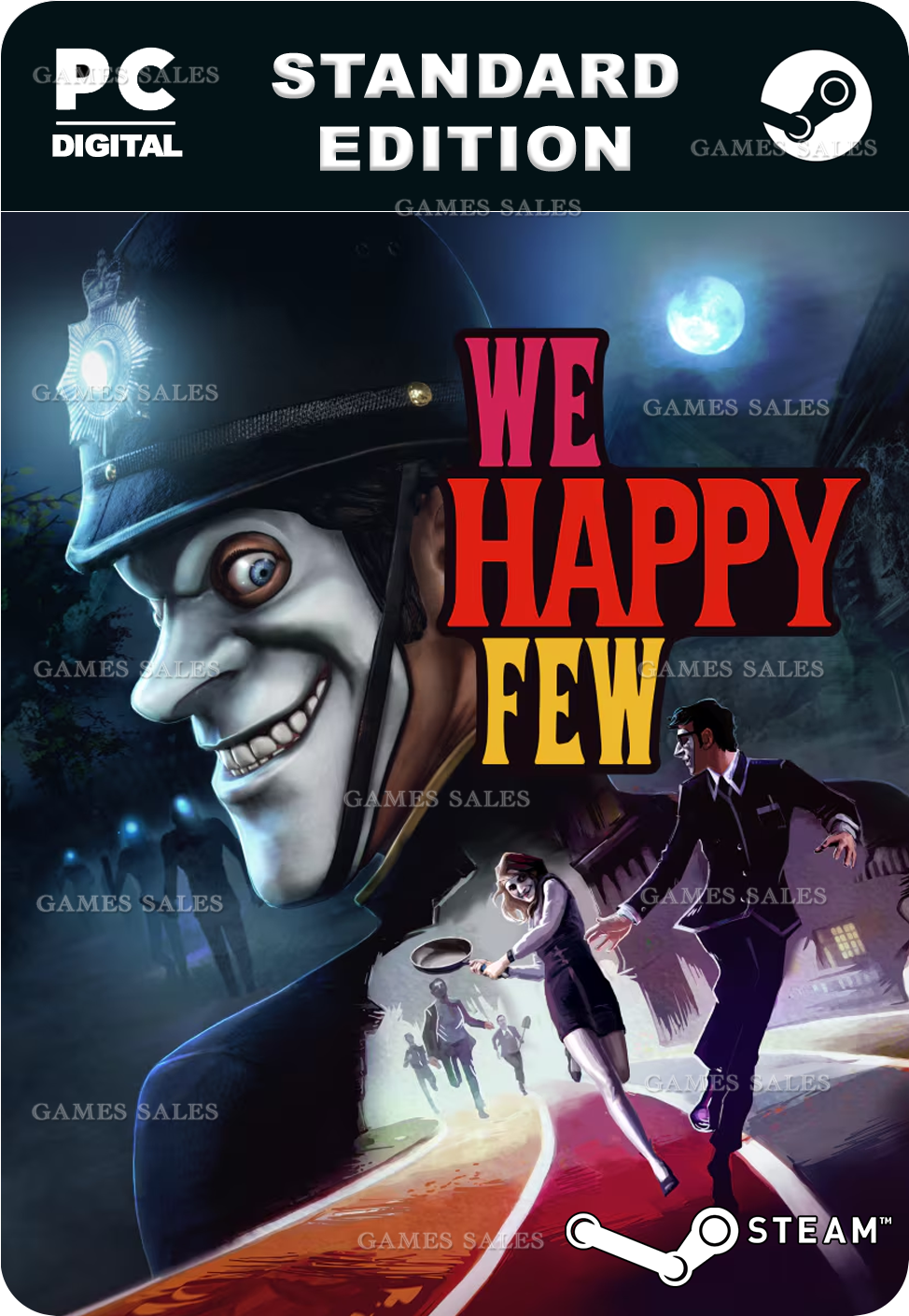We Happy Few — это история небольшой группы отважных и в меру ужасных людей, пытающихся сбежать от жизни в городе Wellington Wells, построенной на радостном отрицании. В этой альтернативной Англии 1960-х в основе всего лежит соответствие нормам. Вы должны бороться или слиться с одурманенными наркотиком жителями, большая часть которых недобра к людям, которые не подчиняются их не вполне нормальным правилам.