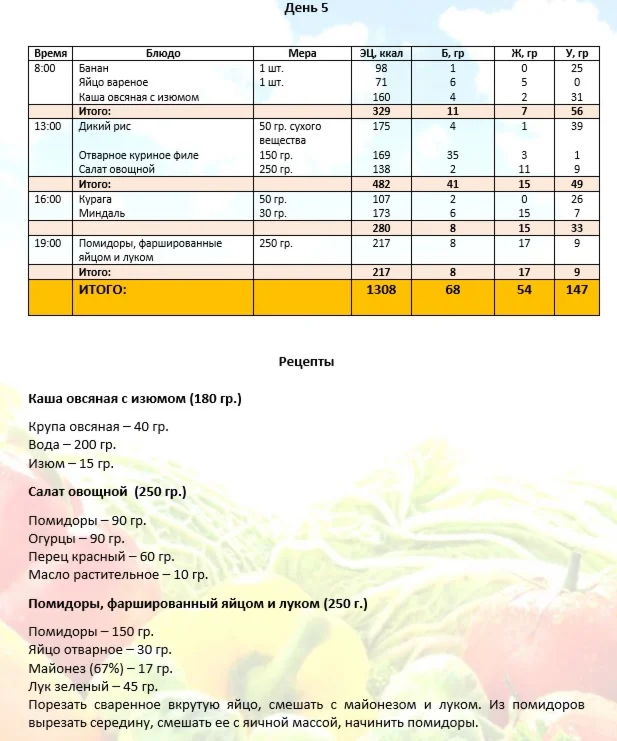Рацион правильного питания на 7 дней