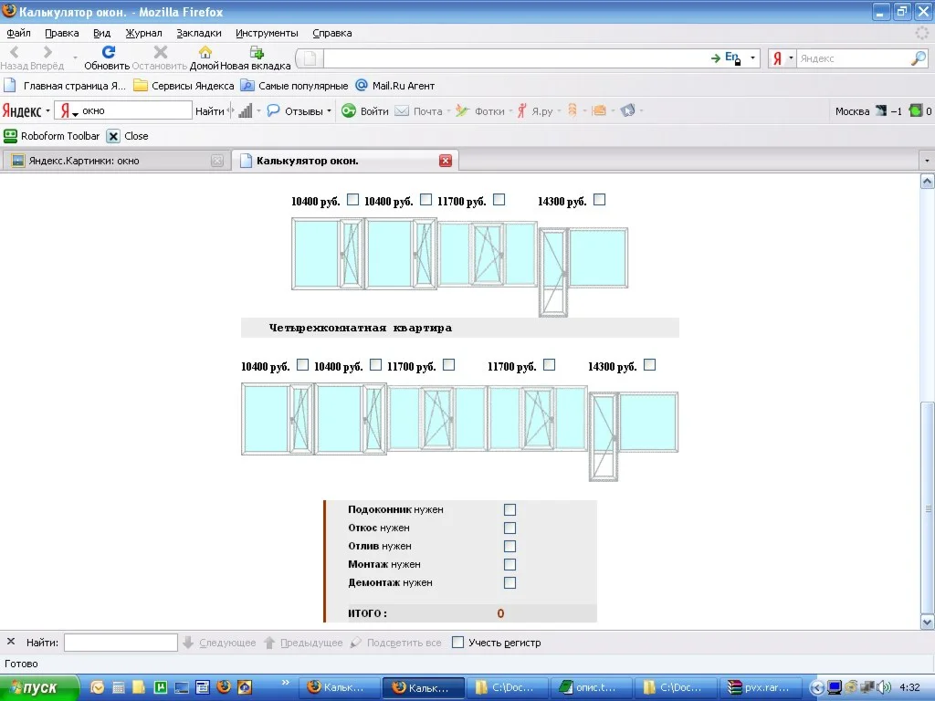 Калькулятор окон ПВХ.