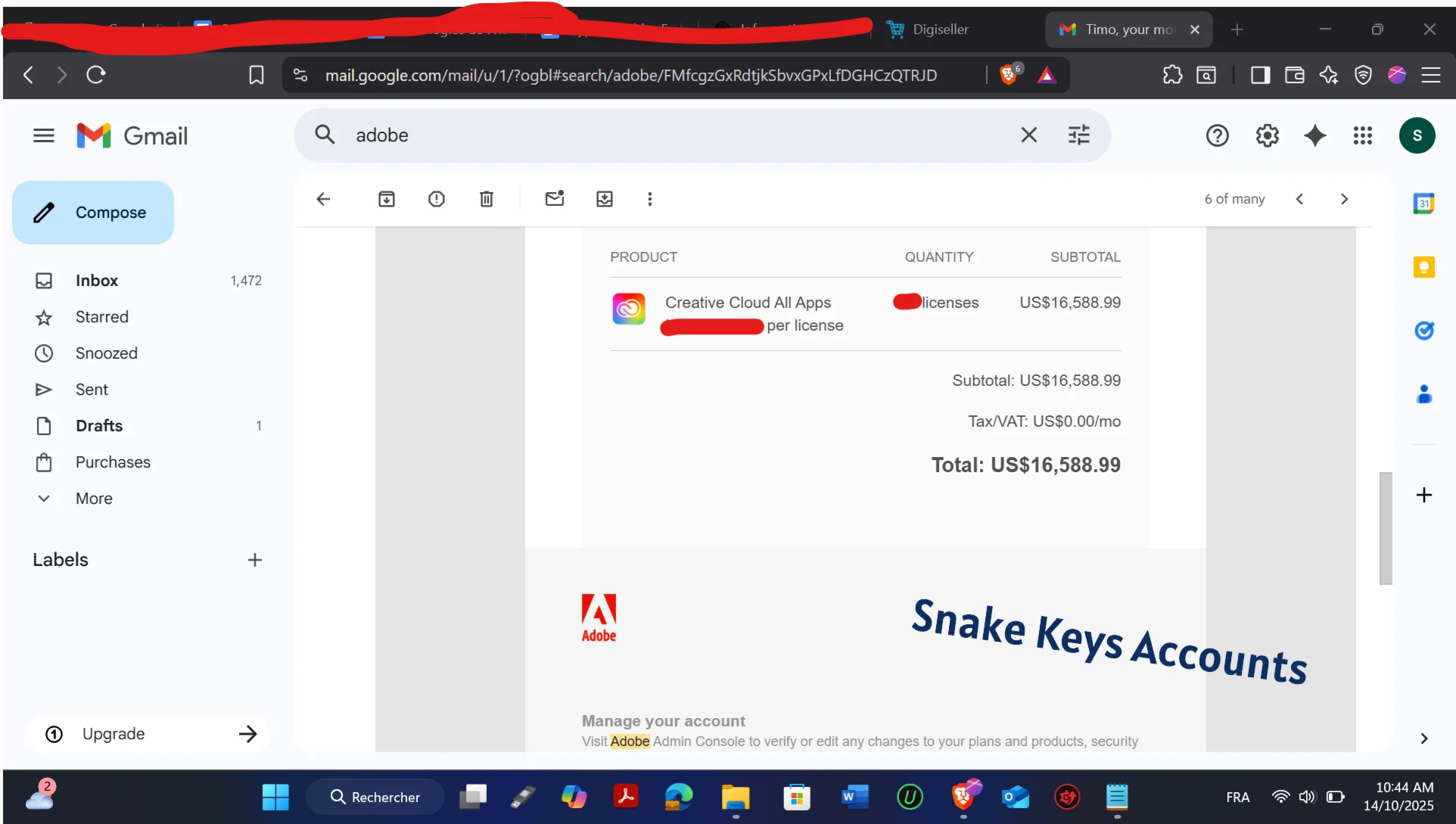 После завершения покупки вы сразу же получите лицензионный ключ активации Adobe Creative в своей учетной записи покупателя на торговой площадке.