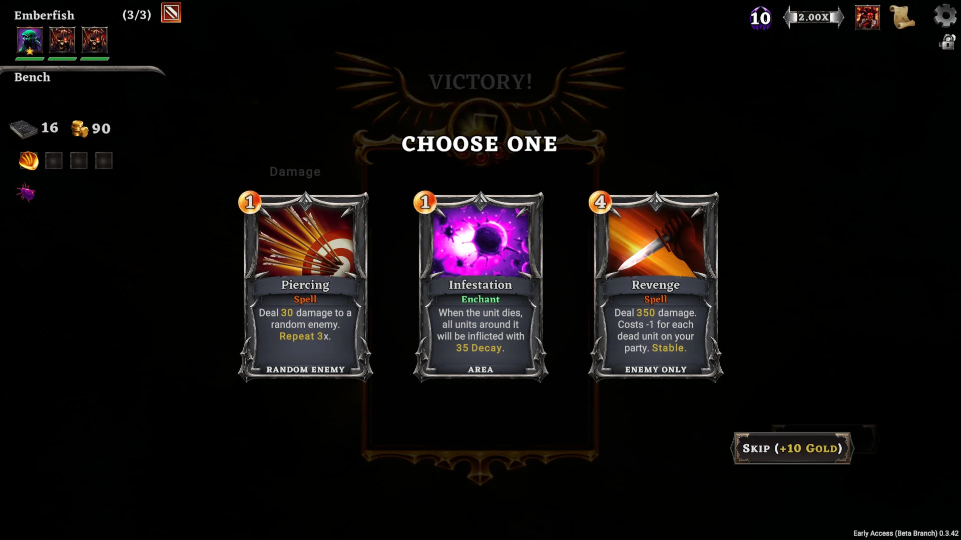 Hadean Tactics is a roguelike deckbuilding game fused with autobattler elements to create a unique strategy experience. Use your cards to influence the actions of your units and help your Hero defeat the Six Wings of Hell!