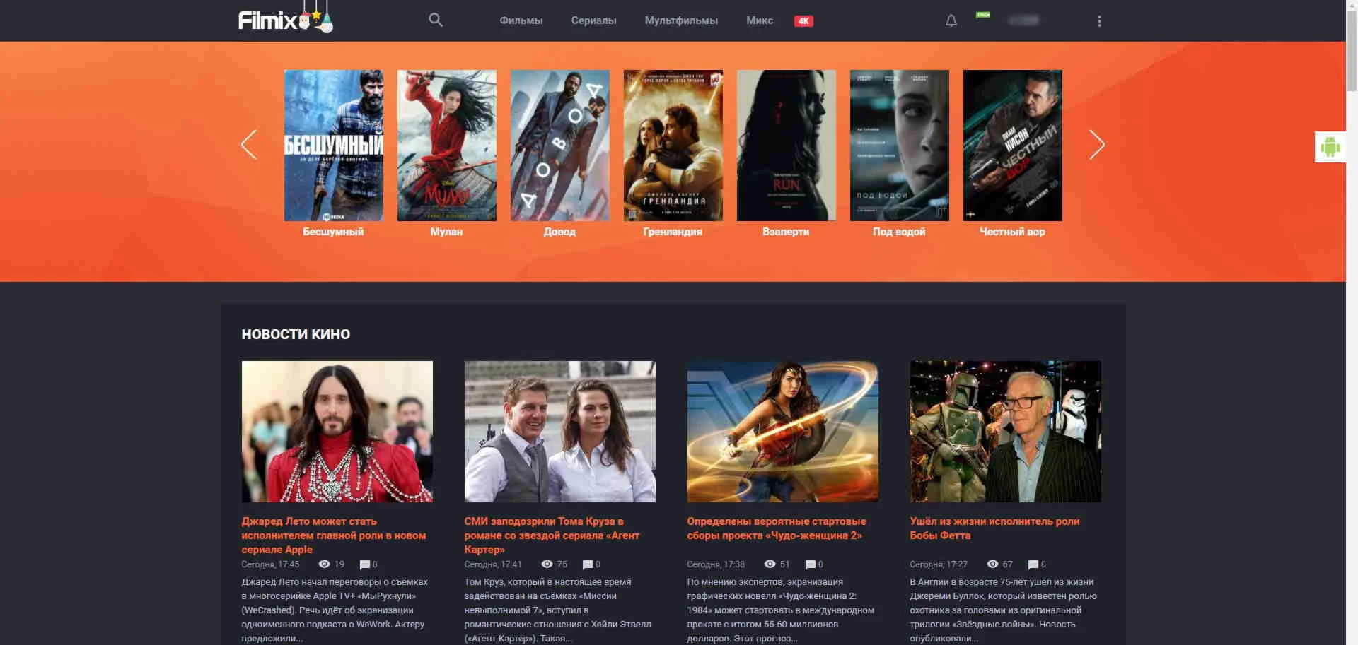 » Просмотр без рекламы и ограничений в 1080p/1440р/2160р для мобильной версии сайта