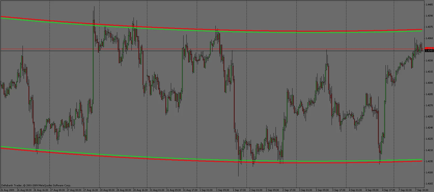 Довольно интересный индикатор, который показывает направление движение цены в канале. Его можно использовать как дополнение к торговой системе уже имеющееся у вас. Хорошие сигналы показывает на ТФ М30, но также рекомендую допускать погрешность отступая от канала где-то 5-7%