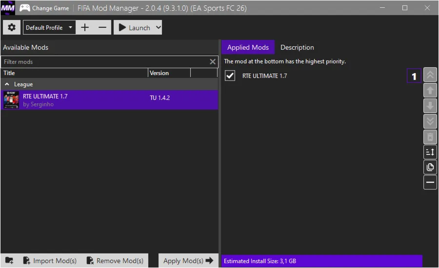Спортивные » FC 26 - RTE ULTIMATE РПЛ by SERGINHO v1.7 TU 1.4.2