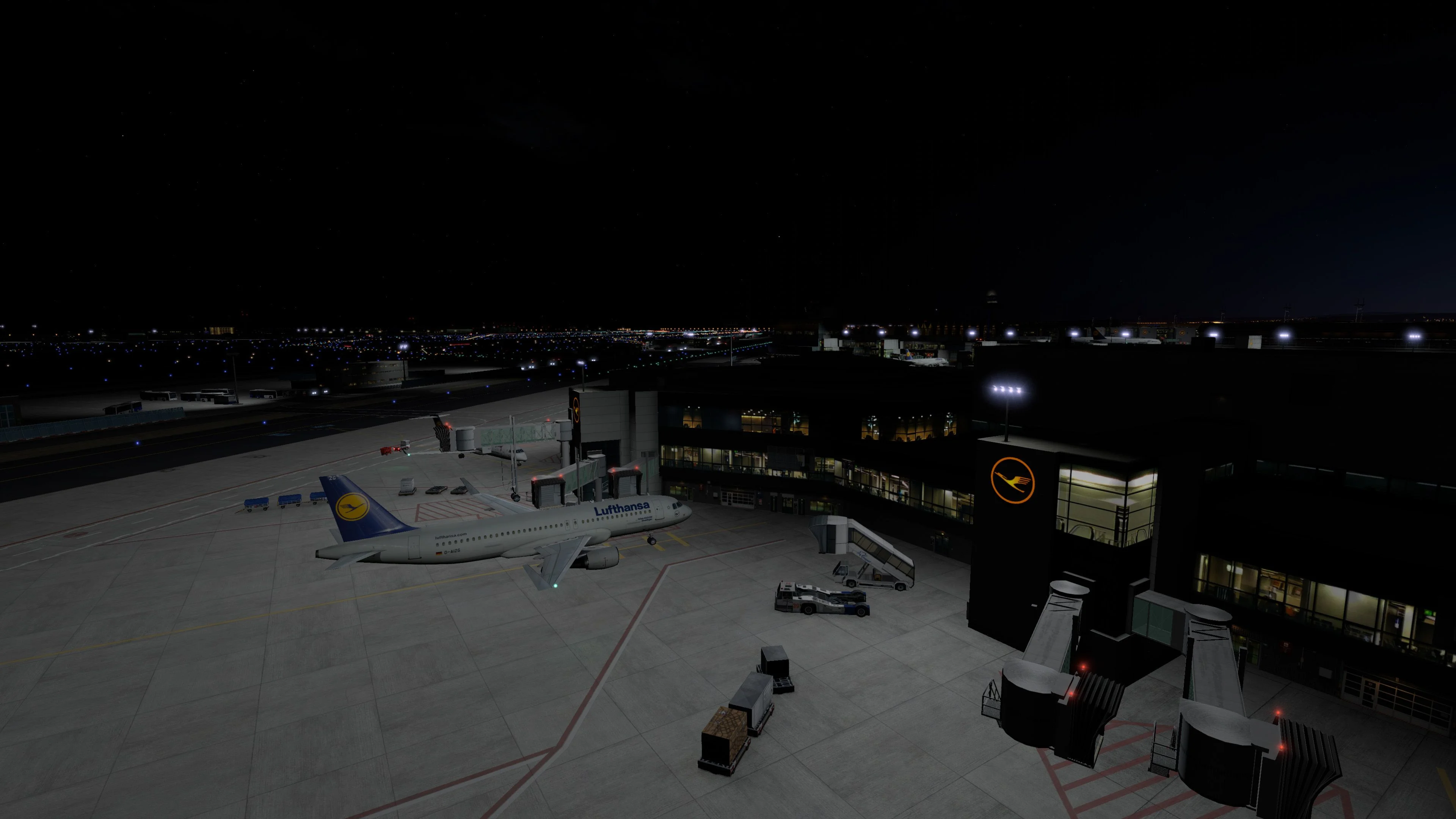 Animated passenger boarding bridges, Safedock A-VDGSs and marshallers at all eligible gates/stands (using the freely available SAM plug-in)