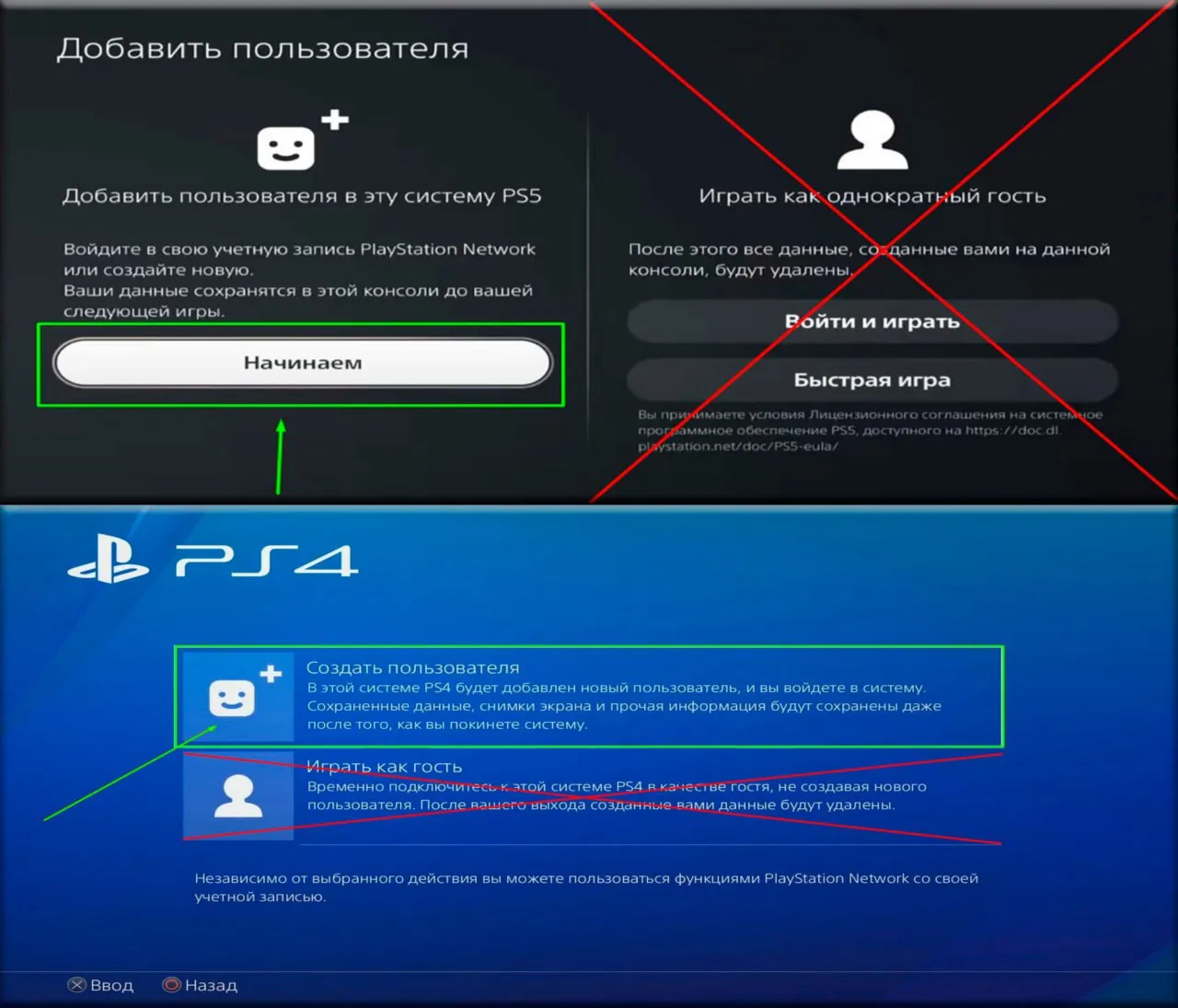 ❖ ДЛЯ PS5: выбираем ➔ "НАЧИНАЕМ" ! (не как гостя!) ➔ "Принимаем лицензионное соглашение"