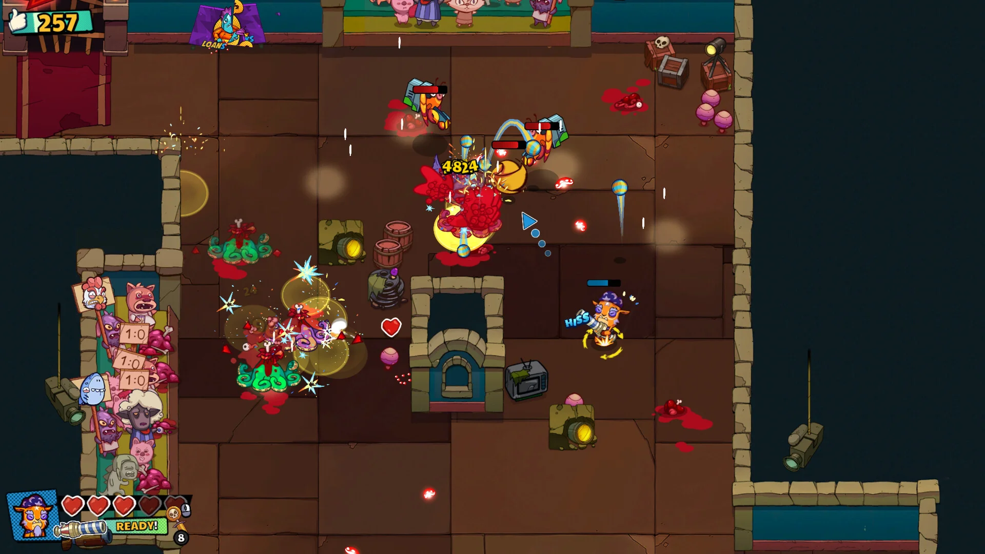 The Crackpet Show - это экшн-игра в жанре roguelite, в которой мутировавшие животные сокрушают сотни противников с помощью разнообразного оружия и перков. Выбирайте питомца по вкусу – и вперед, убивать сотни врагов ради славы!