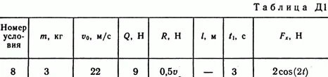 Решение Д1 В68. Условие задачи: Груз D массой m, получив в точке A начальную скорость v0 движется в изогнутой трубе AВС, расположенной в вертикальной плоскости; участки трубы или оба наклонные, или один горизонтальный, а другой наклонный (рис. Д1.0 — Д1.9, табл. Д1). На участке AВ на груз кроме силы тяжести действуют постоянная сила Q (ее направление показано на рисунках) и сила сопротивления среды R, зависящая от скорости v груза (направлена против движения); трением груза о трубу на участке AВ пренебречь. В точке В груз, не изменяя своей скорости, переходит на участок ВС трубы, где на него кроме силы тяжести действуют сила трения (коэффициент трения груза о трубу f = 0,2) и переменная сила F, проекция которой Fx на ось х задана в таблице. Считая груз материальной точкой и зная расстояние AВ = l или время t1 движения груза от точки А до точки В, найти закон движения груза на участке ВС, т. е. х = f(t), где х = BD.