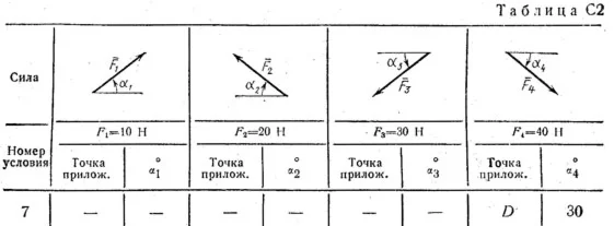 На брусья кроме сил тяжести действуют пара сил с моментом М = 50 Н·м и сила, величина которой, направление и точка приложения указаны в табл. С2.