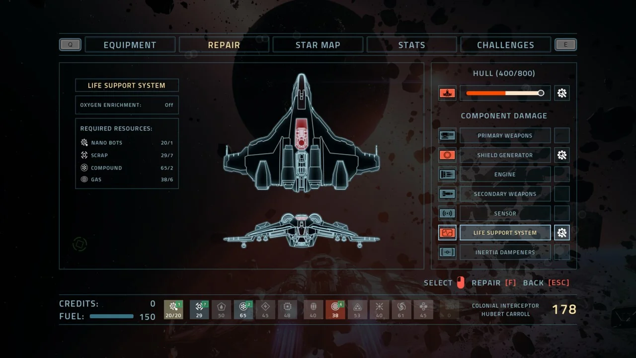 * Три корабля на выбор, каждый со своими возможностями и стартовым снаряжением