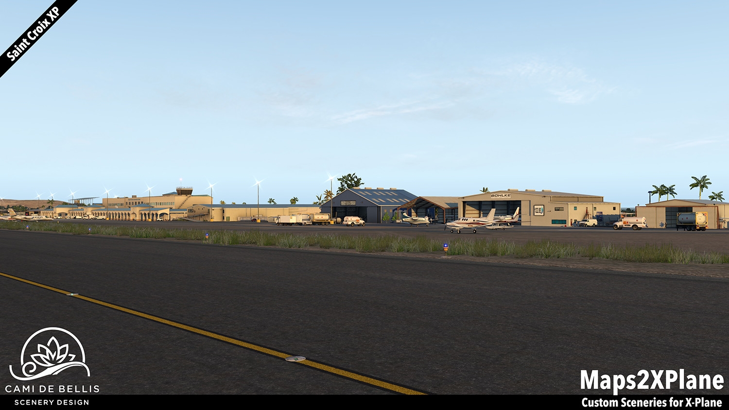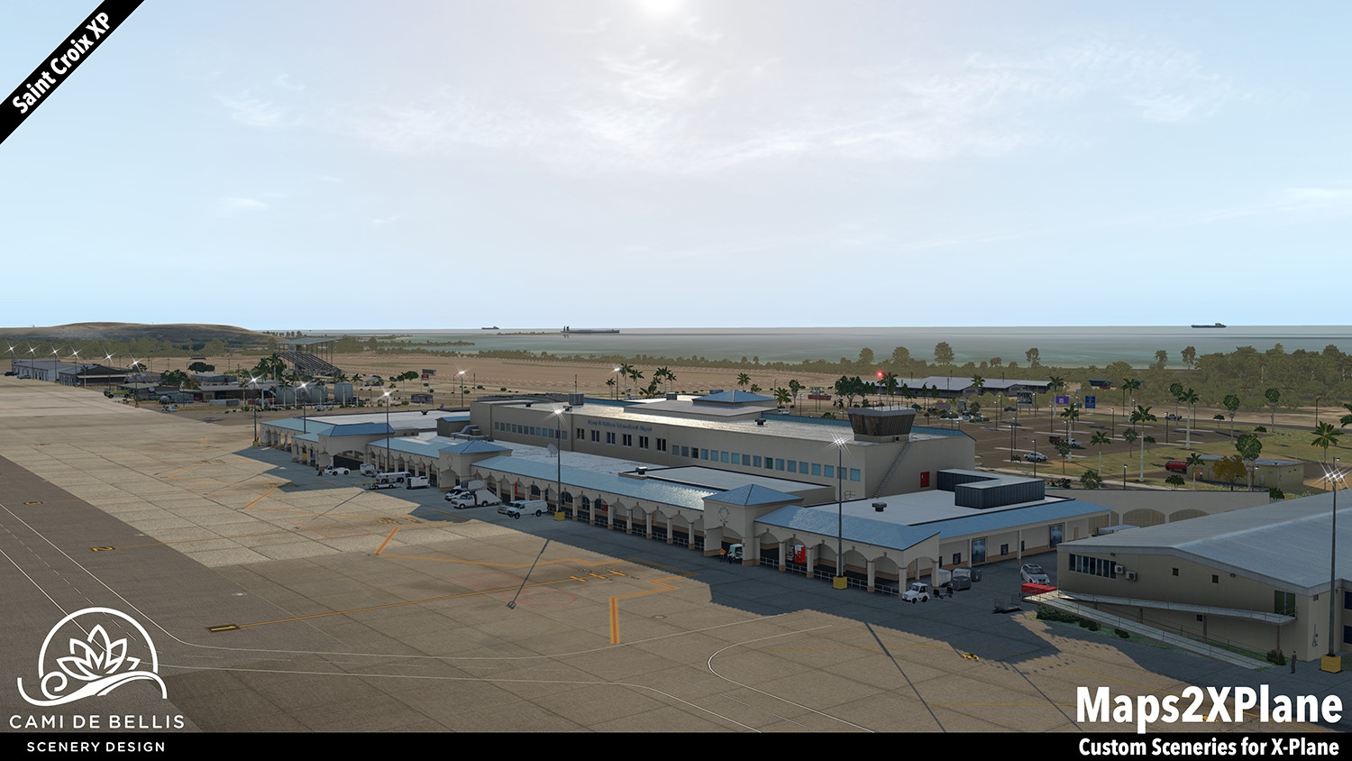 This scenery package for X-Plane 11 features a custom photo-terrain-mesh for the entire island and surrounding islets, with custom overlays (vegetation, road-network and sea-routes with dynamic traffic, autogen buildings) and a highly detailed rendition of the international Henry E. Rohlsen Airport. Renditions of Christiansted and Frederiksted, featuring selected landmarks and including the Seaplane Base, complement the immersive scenery.