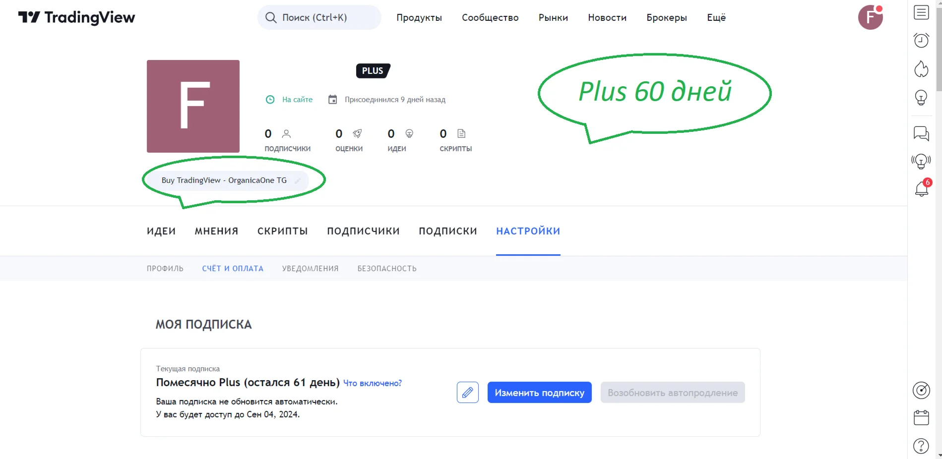 ???? Подписка/аккаунт TradingView Plus на 2 мес (~60 дней)