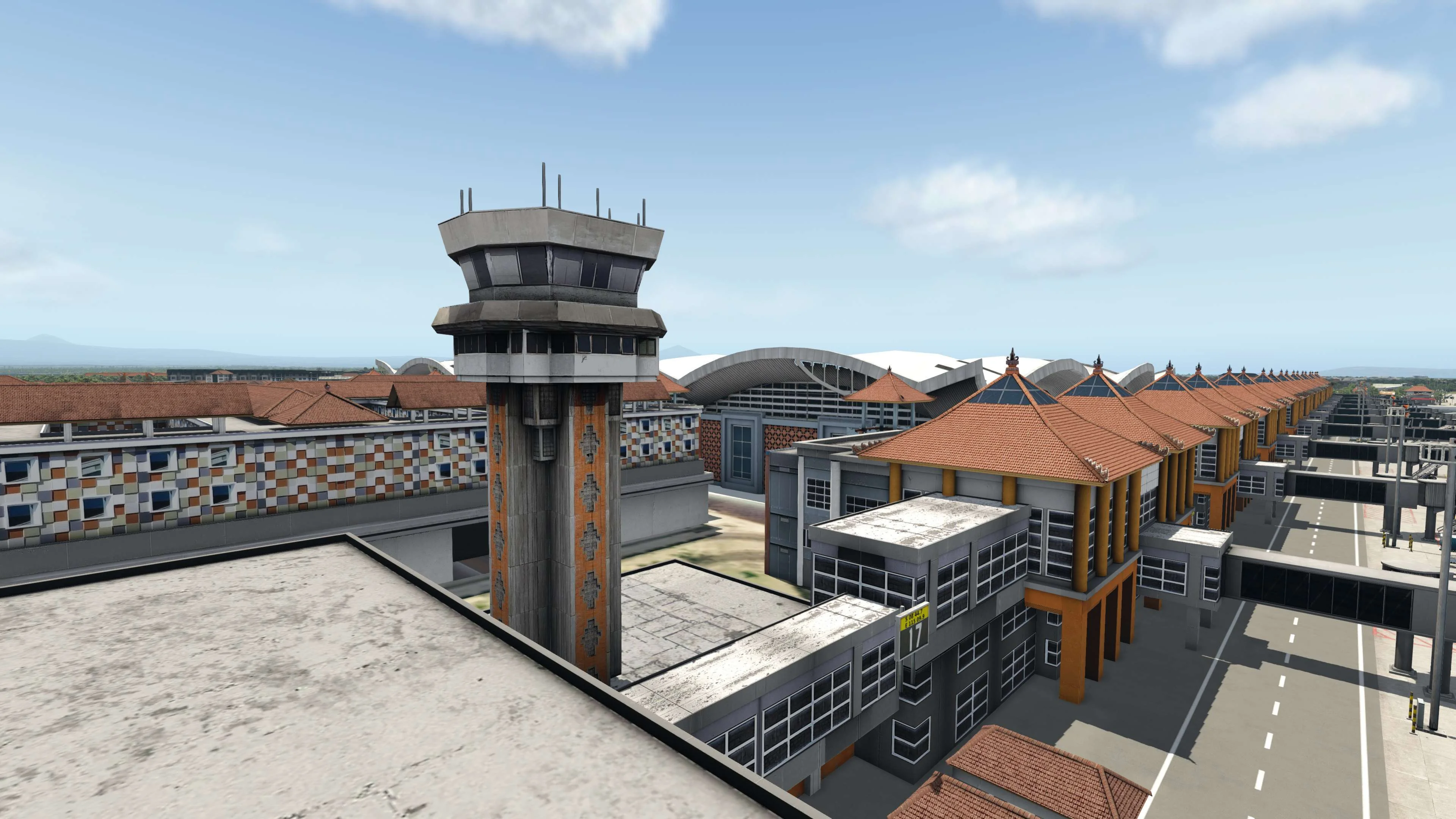 Custom modeled surrounding area of the airport for a true Bali look and feel.