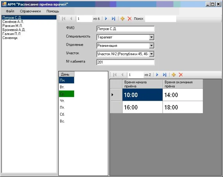 АИС Расписание приема врачей (исх.код VS2010)