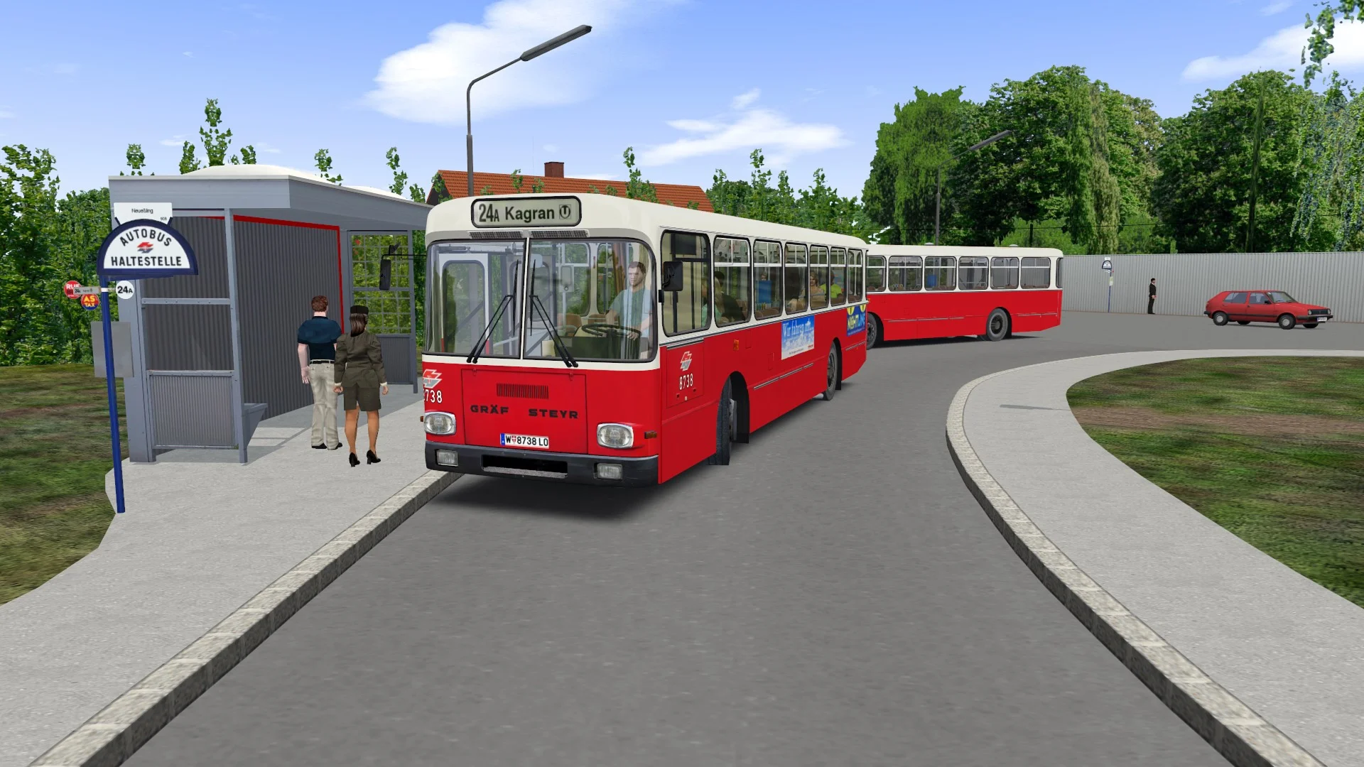 A piece of history is back! Discover the busline 24A from Zentrum Kagran (U) to the outskirts of the town in the 22nd district of Vienna in the high-floor bus LU 200.