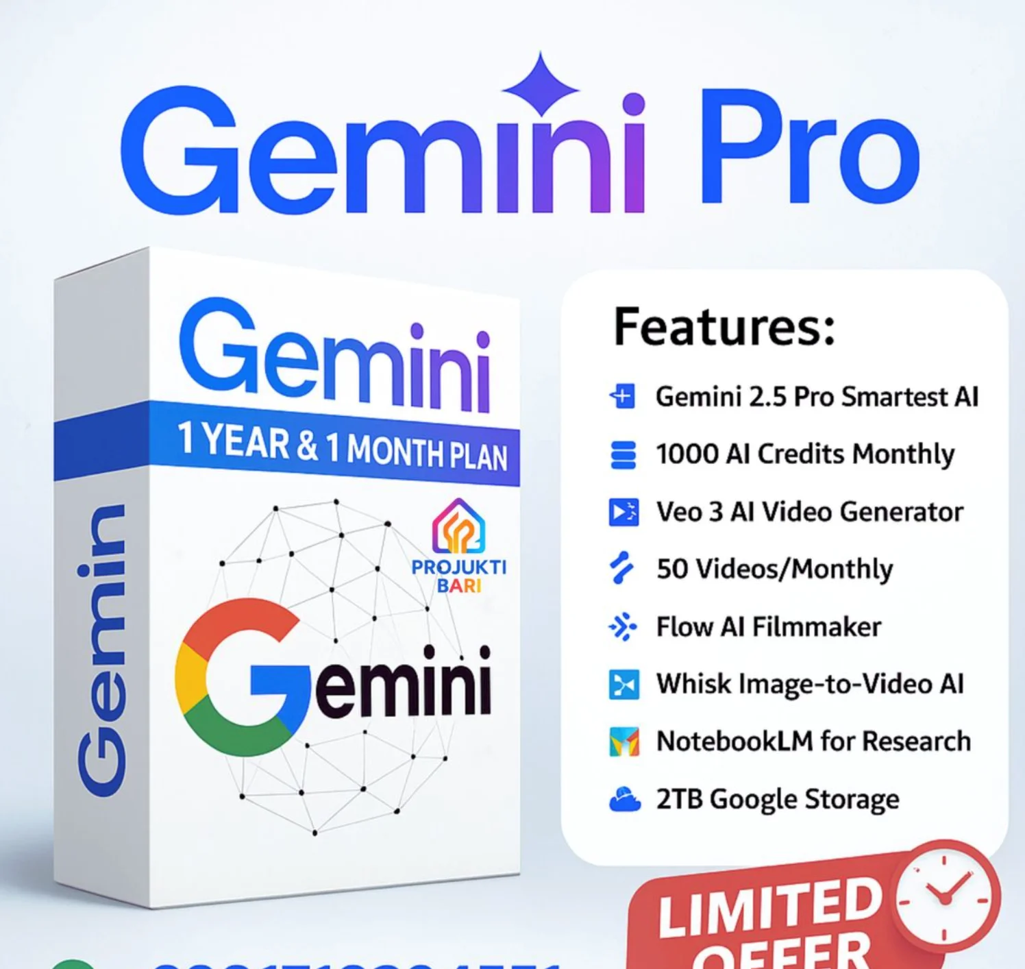 Пакет Gemini AI Pro на 12 месяцев + 2TB личного Google Drive