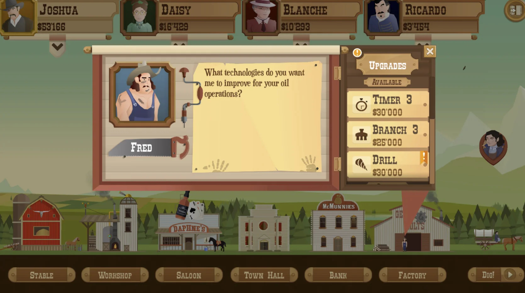 Арендуйте землю на городском аукционе и ищите нефть. Постройте буровую установку, создайте эффективную сеть трубопроводов и поднимите нефть для хранения в силосах. Продавайте нефть в лучшее время, чтобы максимизировать прибыль. Затем купите необходимые улучшения в городе, чтобы справиться с камнем, газом и льдом. Приобретите больше акций города, чем ваши конкуренты, в попытке стать новым мэром.