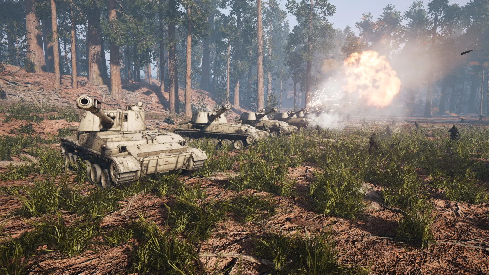 Сложная система зон попадания для пехоты и техники. Баллистика, пробиваемость, начальная скорость для пули/снаряда. Реалистичная графика, звуки, физика, анимации и эффекты.