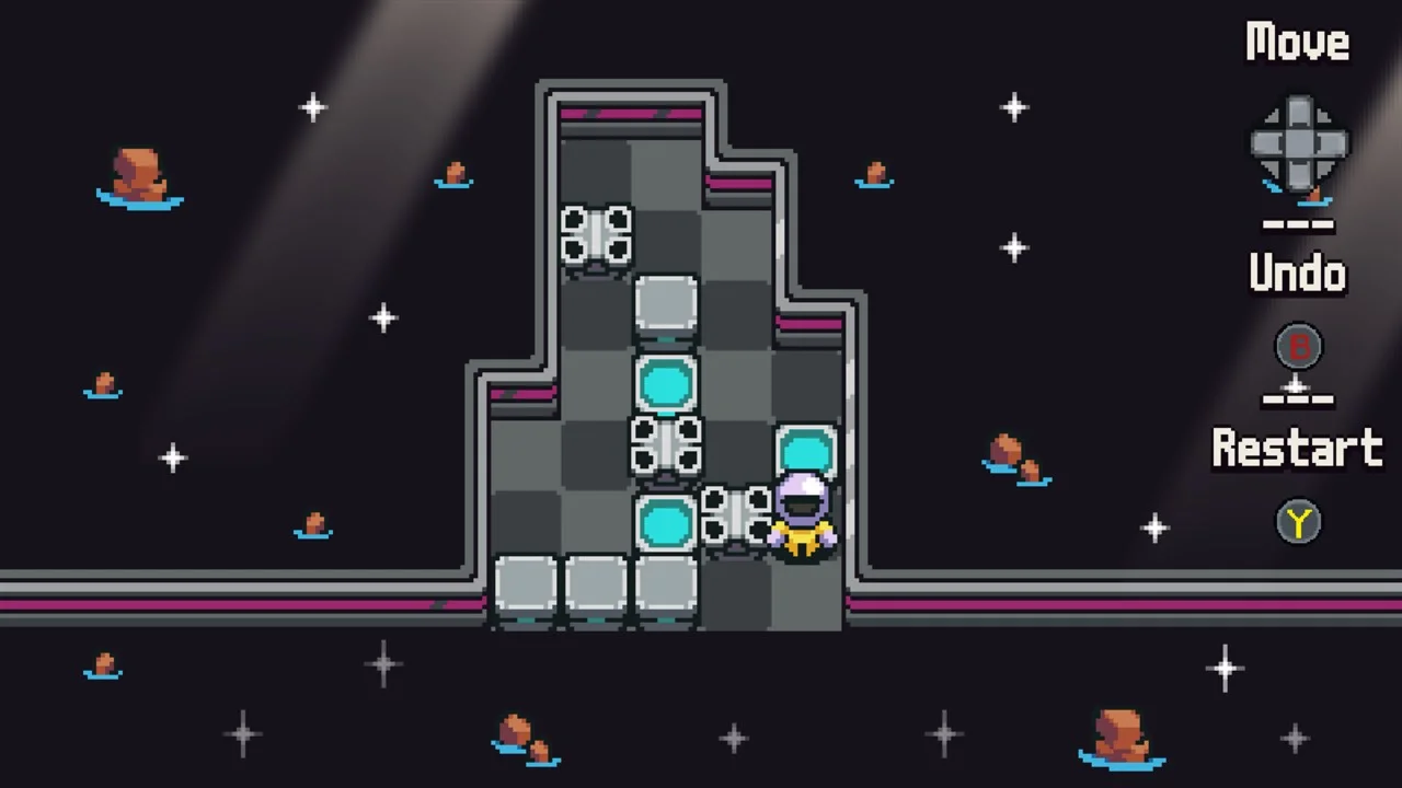 Embark on an interstellar puzzle adventure in Stellar Docks, a grid-based logic game featuring charming 2D pixel art. Guide an astronaut as they push drones to their charging docks across challenging maps filled with strategic puzzles. With a top-down view and intuitive controls, the game offers a satisfying progression that will test your problem-solving skills. From the interiors of a spaceship to the icy landscapes of Neptune, explore diverse environments and unravel intricate challenges that push your mastery of each mechanic.