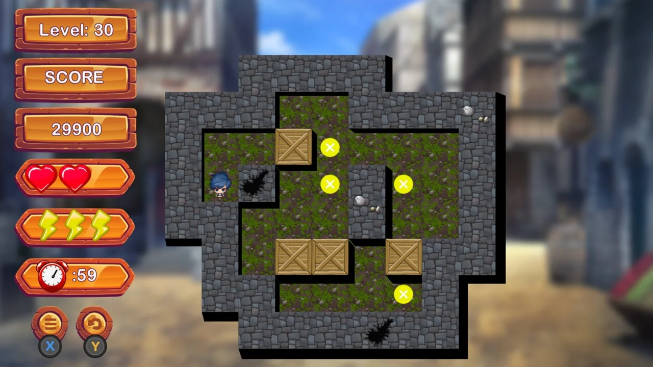Introducing an exciting traditional Sokoban game! Your mission is to correctly position the boxes on the markers before time runs out. But be careful, if