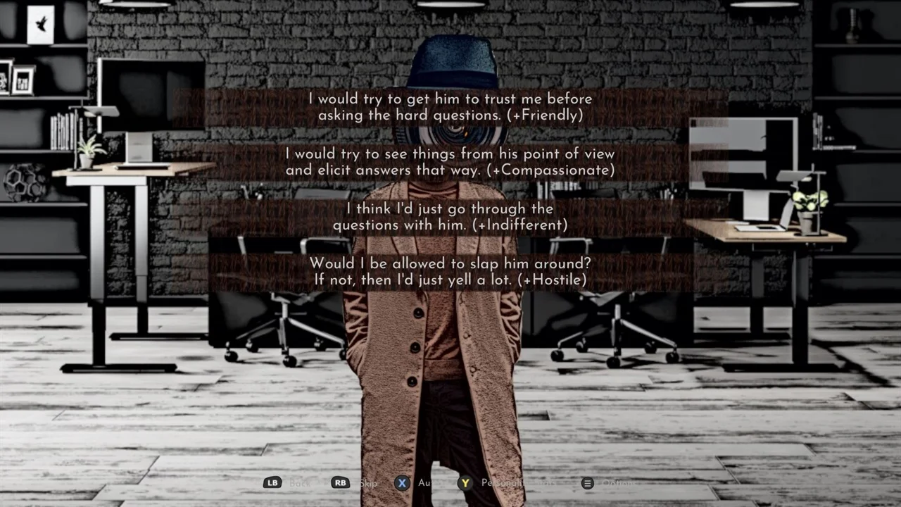 Вместе с Клэшем вы будете допрашивать потенциальных подозреваемых и своими решениями влиять на ход расследования. Обмануть ли придурковатого хакера или ударить его? Проявите ли вы сочувствие к измотанному официанту или скажете ему, чтобы он отстал? Все зависит от вас! Только учтите, что Clash обращает внимание на то, как вы справляетесь с любой ситуацией...