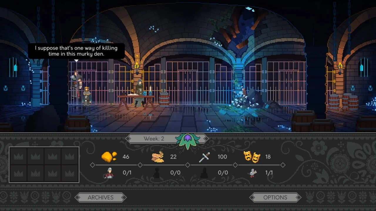 Yes, Your Grace tells a tale of Davern, a medieval kingdom ruled by King Eryk. The game is set in a fictional world where monsters and arcane practices inspired by Slavic folklore are the order of the day. Villagers will ask for your help with various problems, from monsters attacking the village to a lack of places to relax and enjoy themselves. Some will bring humour to your throne room and some will present you with difficult choices. Your family is important too, and throughout your time as King, you will have to support them in their struggles.