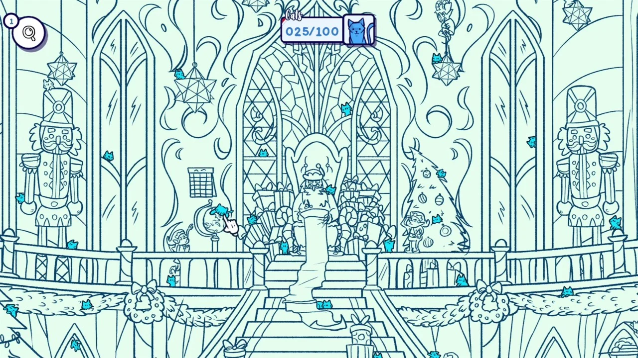 Заходите на праздник и найдите всех котиков, спрятанных среди эльфов, чтобы раскрасить город!
