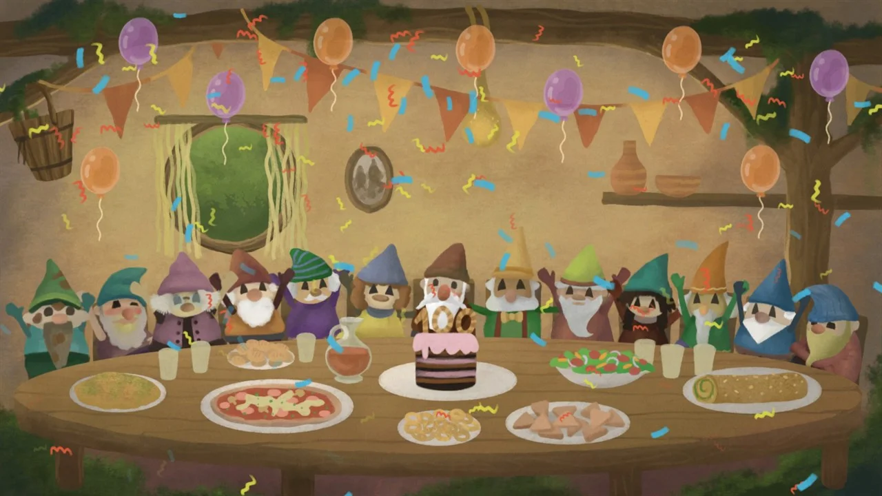 В маленькой гномьей деревушке, что в волшебном лесу, дедушка-гном ждёт гостей на свой 100-й юбилей.