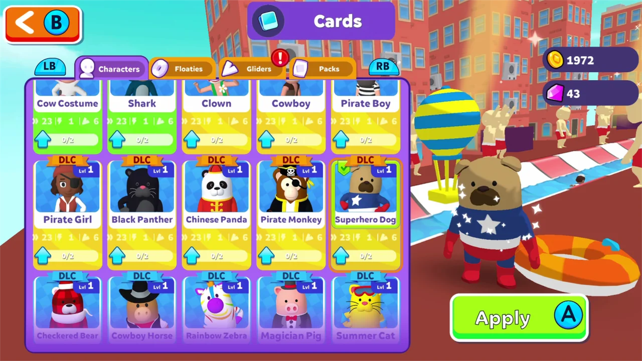 - более 39 забавных скинов, 11 плавательных кругов, 13 планеров