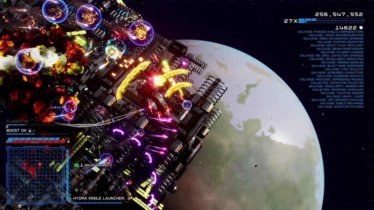 This game is a passion project, and it’s the first game from Scott McClusky (aka Coffee Puck Games.) The concept was to take a game like Escape Velocity with physics-based 2d spaceship gameplay, and combine it with the increased pace and gamepad controls of a game like Geometry Wars. Add in a hefty dose of ship and weapon customization somewhat influenced by MechWarrior and the ability to choose your path akin to Outrun, Darius or Star Fox, and the result is Radio Free Europa.