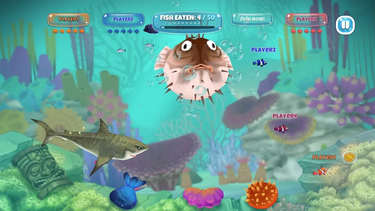 Inspired by the legendary SHARK! SHARK!® game released in its original version for the Intellivision® home console in 1982, this reimagined version for up to four players offers you a modern and addictive gameplay, fantastic graphics, great sounds, lots of levels and many underwater characters. In addition you are also able to play the old original Intellivision® SHARK! SHARK!® from 1982. Please enjoy SHARK! SHARK!® from today and from the past!