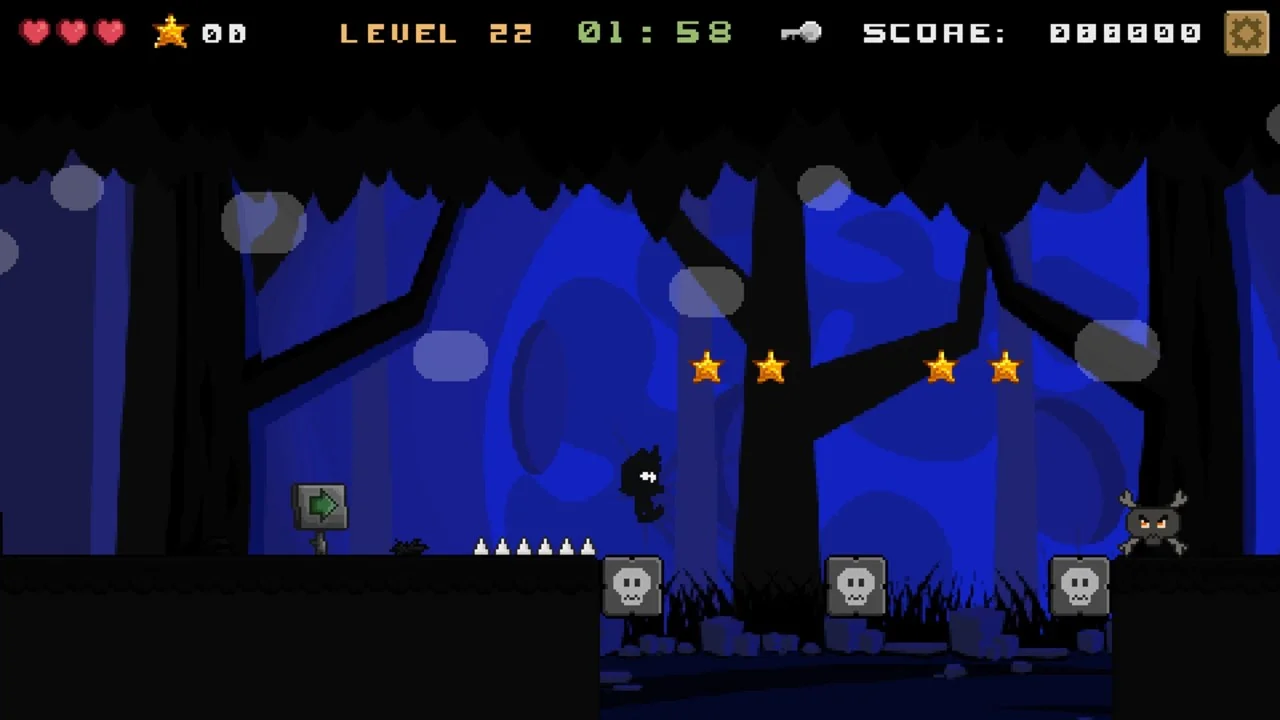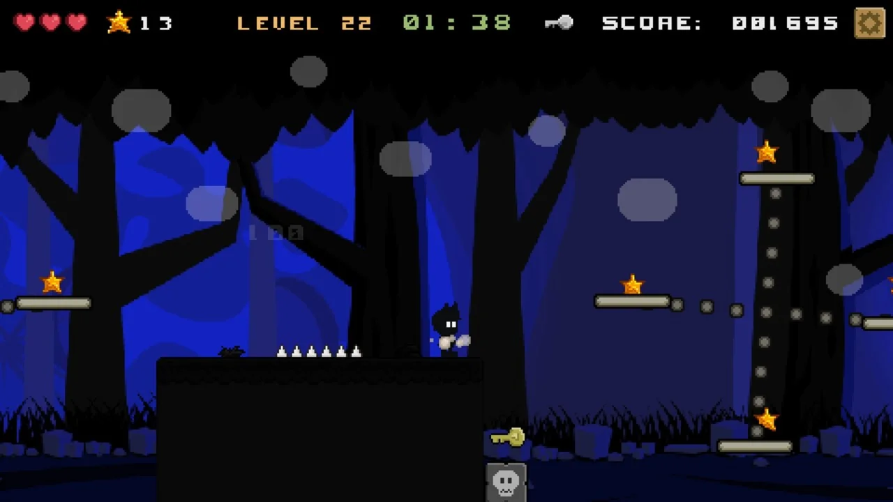 Guide our brave shadow hero across mysterious valleys in search of the hidden key that unlocks the portal. Watch out for deadly traps overhead, spikes beneath your feet, and treacherous cliffs at every turn! Leap onto enemies to destroy them, but be careful not to lose your footing.