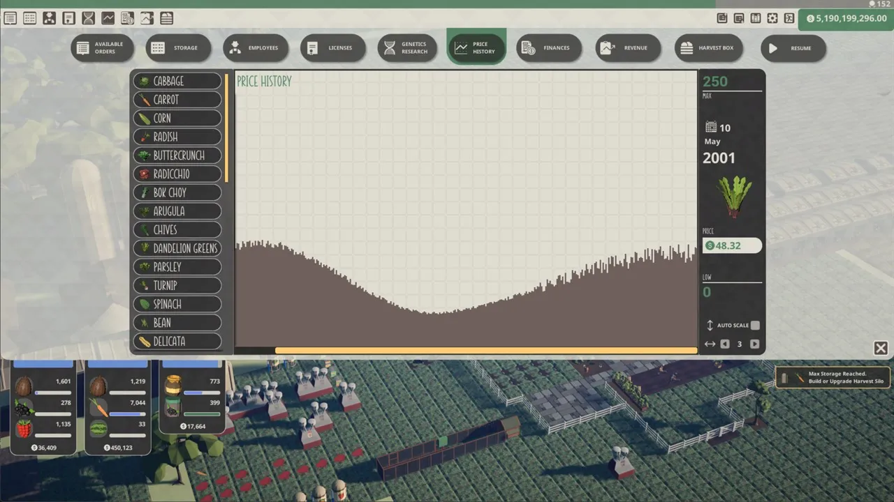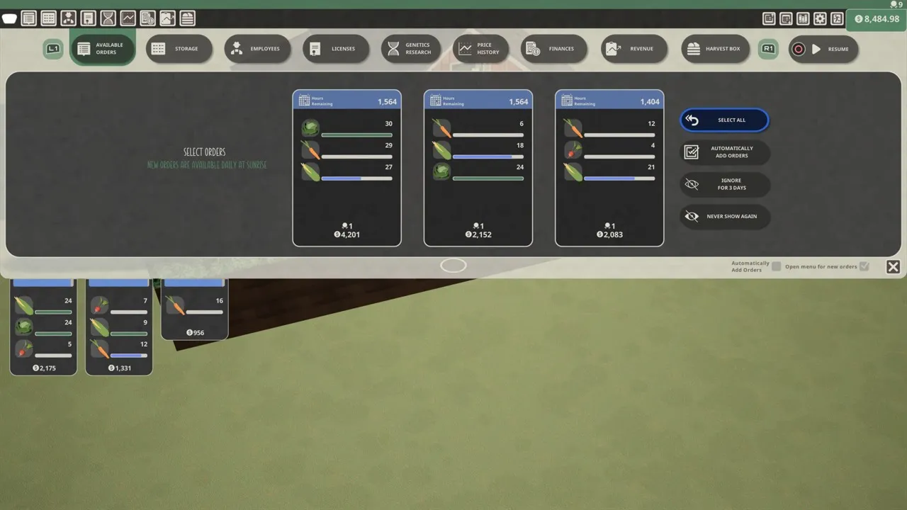 Заработок зависит от ценности культуры и скорости выполнения. Со временем ценность заказа падает, и после истечения срока исчезает. Слишком много простроченных заказов ухудшает репутацию фермы.