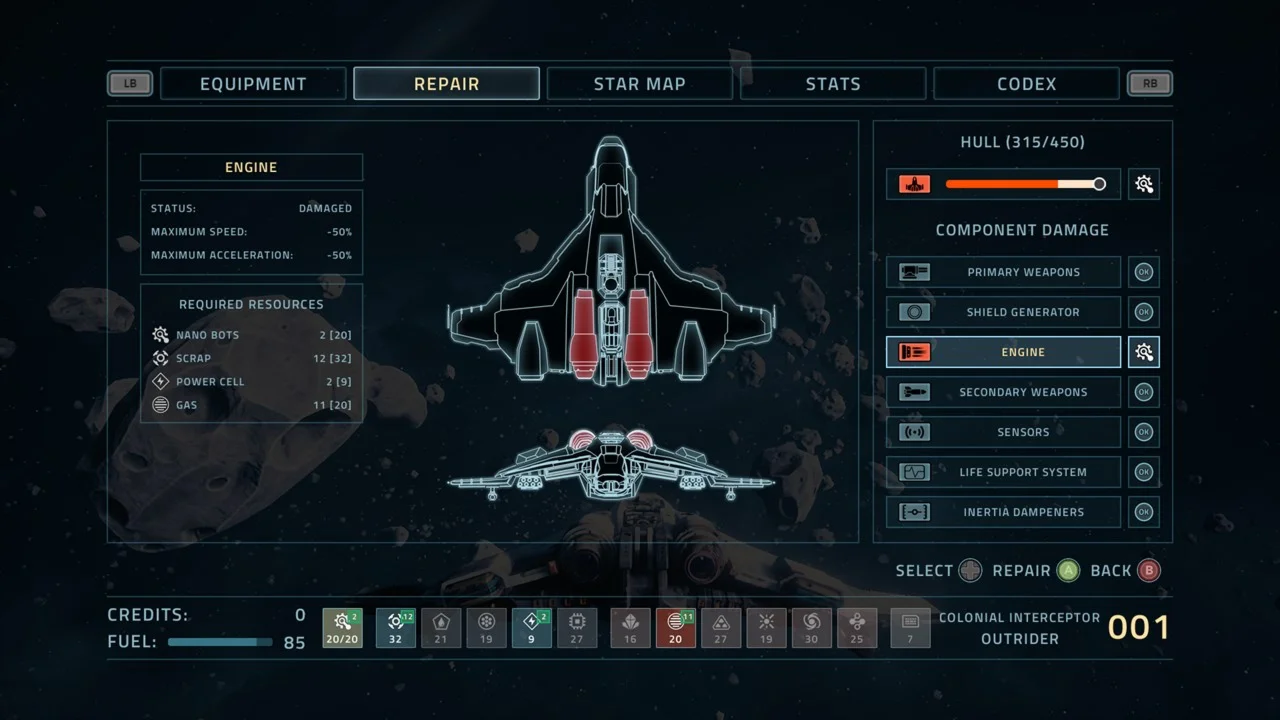 * Три корабля на выбор, каждый со своими возможностями и стартовым снаряжением