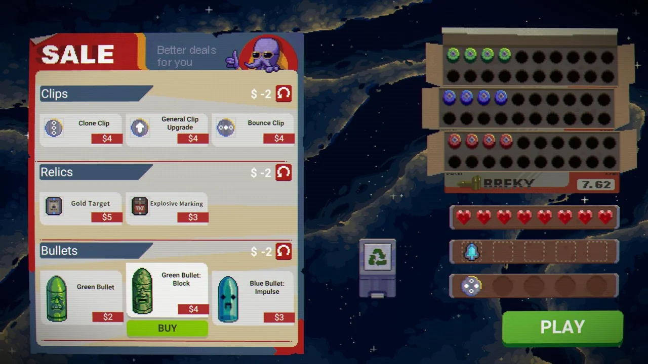 Подберите комплект разносящих всё пуль, сочетая реликвии, комплекты обойм и сами пули с особыми свойствами, которые умеют взрывать, разъедать и преумножать. Экспериментируйте с каждой попыткой. Думайте над каждой сборкой. Пускайте в дело каждую пулю.