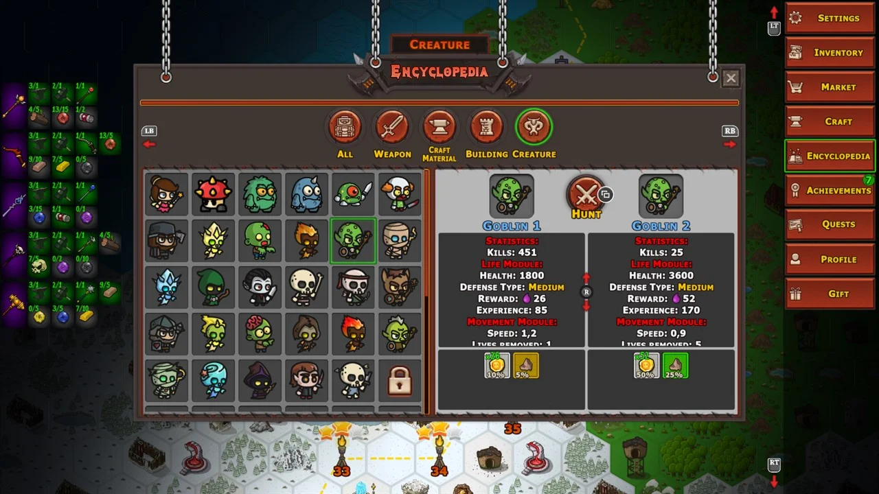 • Подробная энциклопедия: Просматривайте игровую энциклопедию для получения информации о героях, монстрах и предметах.