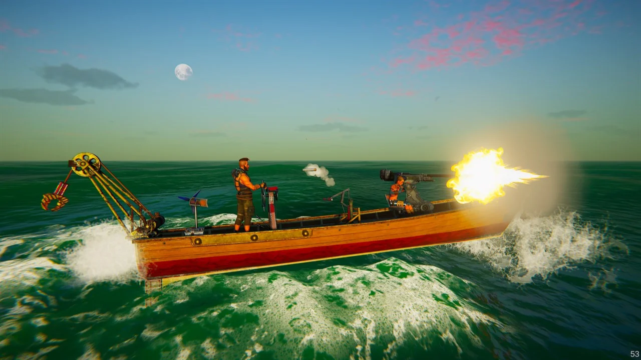 Стройте плавсредства с нуля или модифицируйте имеющиеся. Игрокам доступны десятки корпусов и сотни деталей, из которых можно собрать хоть маленькую лодку, хоть здоровенный катер длиной в 30 метров, а потом оснастить оборудованием, броней и оружием. Главное — не забыть собрать подходящую команду, чтобы было кому стоять за пулеметами и пушками.