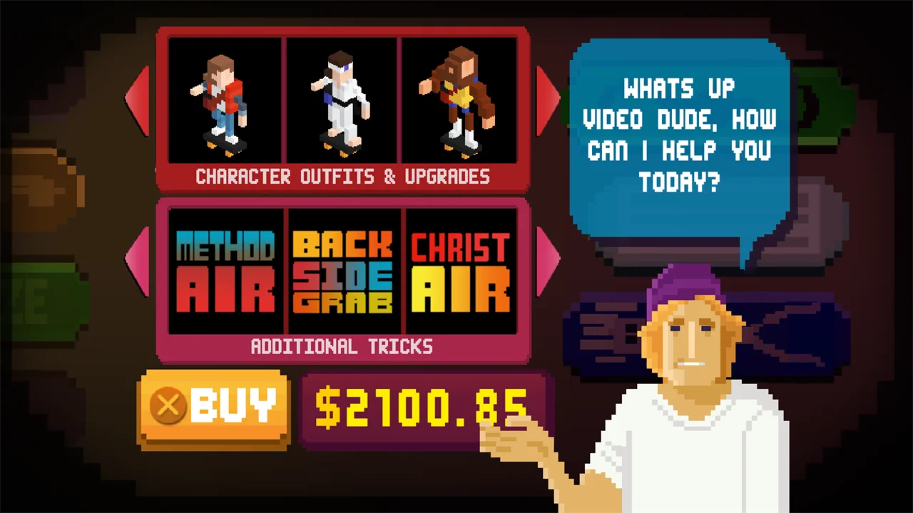 The VideoKid pays homage to the 1980s, and the classic videogames of that era. Harking back to a simpler time of pure gameplay, take control of The VideoKid as he hurls videos through the mailboxes, or windows, of his customers to earn cash. Dodge civilians, jump and grind cars and avoid the neighbourhood cops to stay alive. But this is no ordinary street... you may also encounter strangely-familiar characters from your past. How many will you spot?