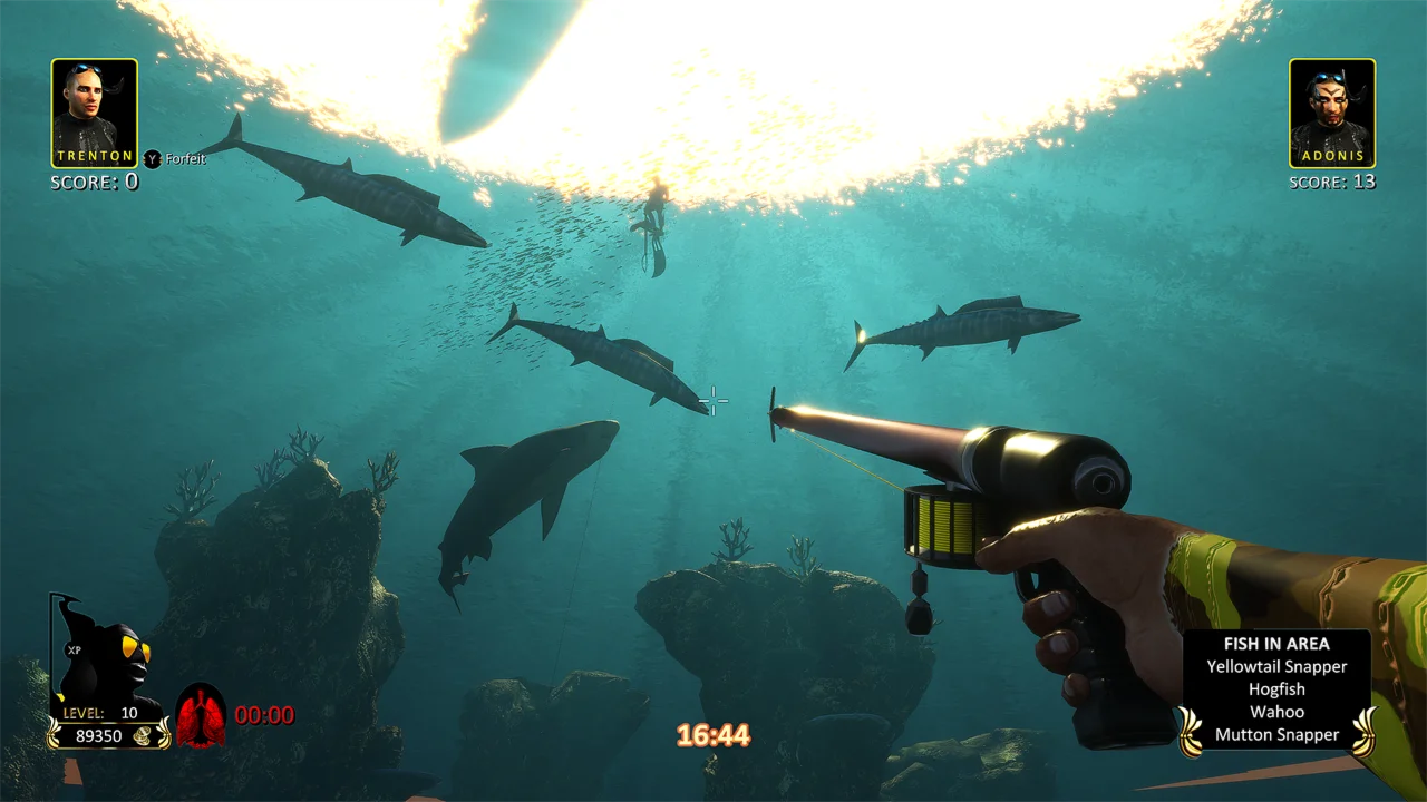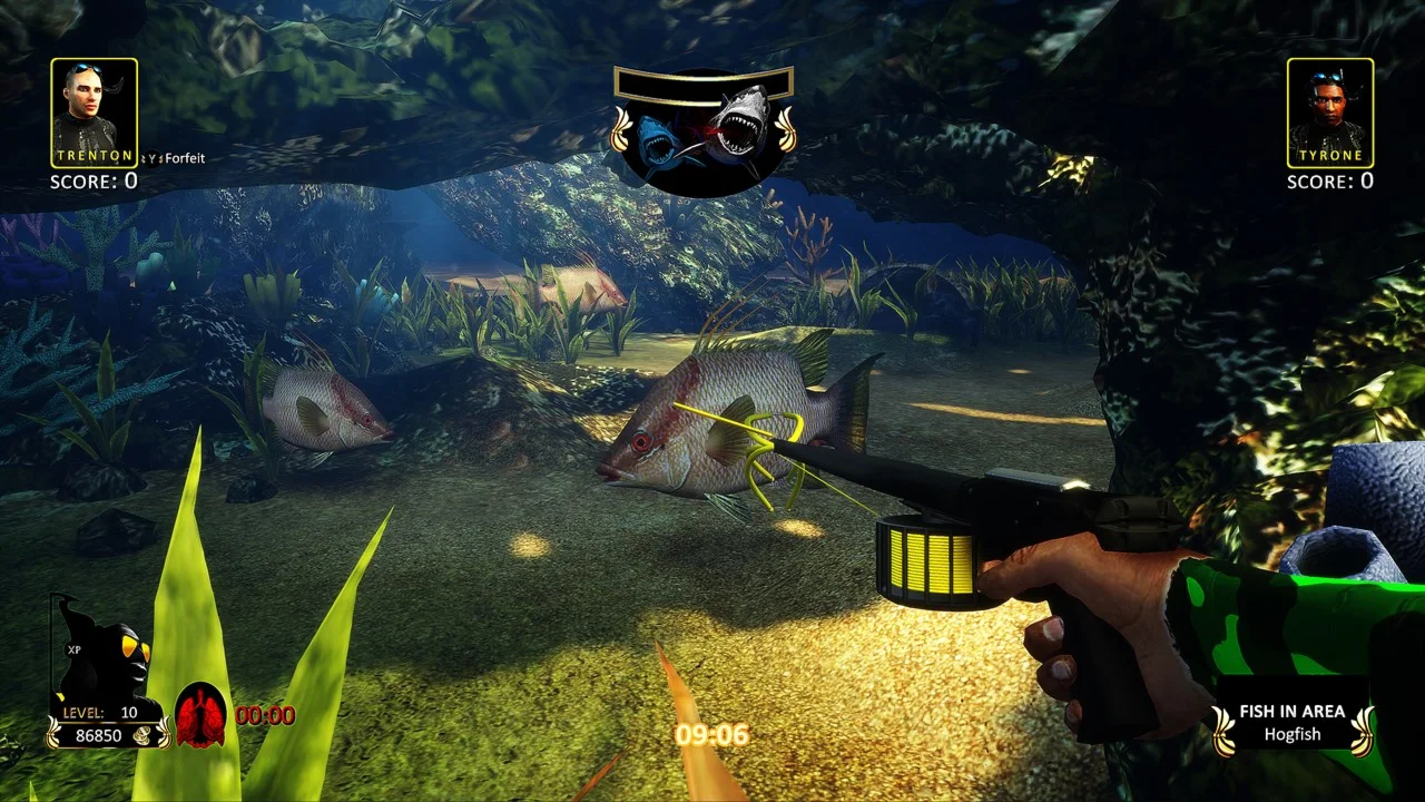 In this game, the player will choose their player character (male or female of various races/ethnicities) to compete against increasingly difficult spearfishing challengers from around the world with the goal of becoming the champion Freediving Hunter over all. On the way to becoming the champion the player will unlock lush saltwater marine environments around the world such as stunning reefs teeming with sea life, ancient shipwrecks and ruins, kelp forests, etc. in an exciting hunt for prized saltwater fish. The player will earn money with every fish they hunt, every challenger they defeat and every special shot they pull off, giving them the ability to buy new masks, fins, guns, wetsuits and flashlights to gain more advantage over their opponents and their prey. As the player conquers the depths, the fish will become bigger and more exotic. Of course, the player will also be warding off hungry sharks that are trying to steal their fish at all times while also avoiding the ever-present blackout danger, creating a very challenging, thrilling and suspenseful gameplay.