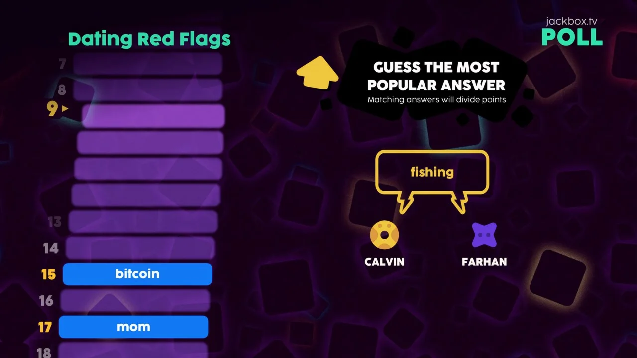 Узнайте, что думают люди со всей страны! The Jackbox Survey Scramble — это коллекция невероятно смешных игр, основанных на опросах. Мы используем односложные ответы реальных людей. Нет, серьезно!
