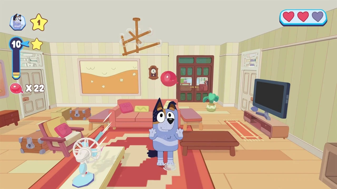 Присоединяйтесь к интерактивным приключениям Блуи, Бинго, мамы, папы, кузины Маффин и дяди Страйпа в легендарных локациях. Выбирайте любимого персонажа, надевайте дурашливый наряд — и вперед, исследовать мир. Побегайте по дому Хилеров в шапке с помпоном и побродите у ручья с дамским полотенцем на голове, разыскивая коллекционные предметы, связанные с персонажами — например, фламинго и ракетки.