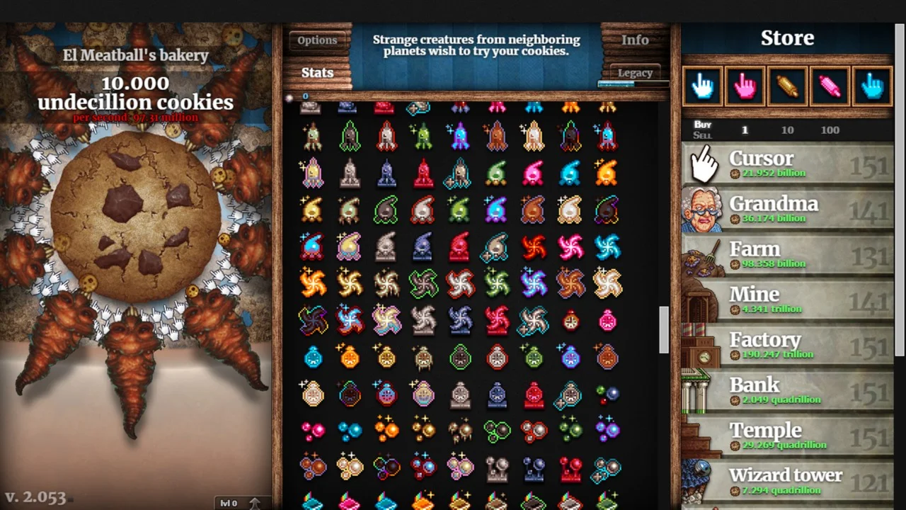 * Collect cookies and spend them to earn even more cookies