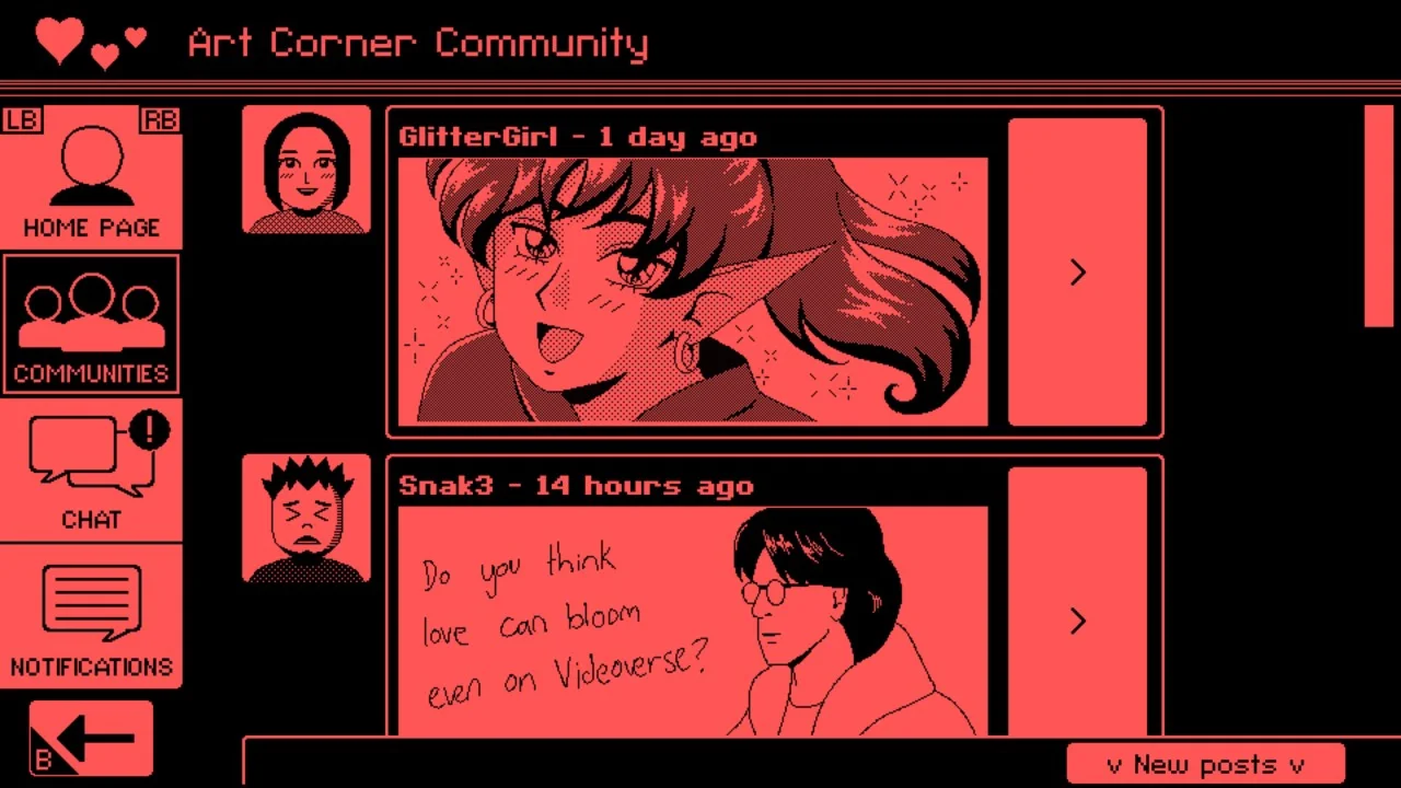 Погрузитесь в атмосферу прошлых социальных игровых сетей в VIDEOVERSE — повествовательном приключении с элементами принятия решений, где внимание уделяется развитию персонажей, дружбе и любви.
