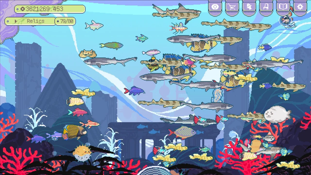 A relaxing idle experience. Your fish keep growing even while you’re away. Come back to see how your little world has changed and be pleasantly surprised.
