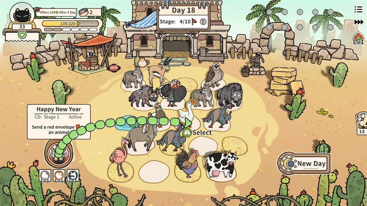 Take on the role of ranch manager and grow your fledgling herd of animals into one worthy of pleasing the Cat God! There are many different paths to choose from, but only one hurdle to overcome at the end of each week. Pay tribute to the Cat God or face his wrath and have your ranch shut down.