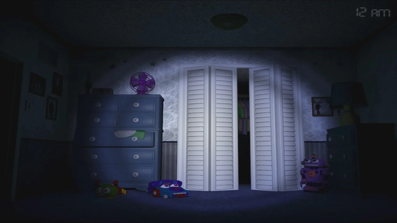 In this last chapter of the Five Nights at Freddy's original story, you must once again defend yourself against Freddy Fazbear, Chica, Bonnie, Foxy, and even worse things that lurk in the shadows. Playing as a child whose role is yet unknown, you must safeguard yourself until 6am by watching the doors, as well as warding off unwanted creatures that may venture into your closet or onto the bed behind you.