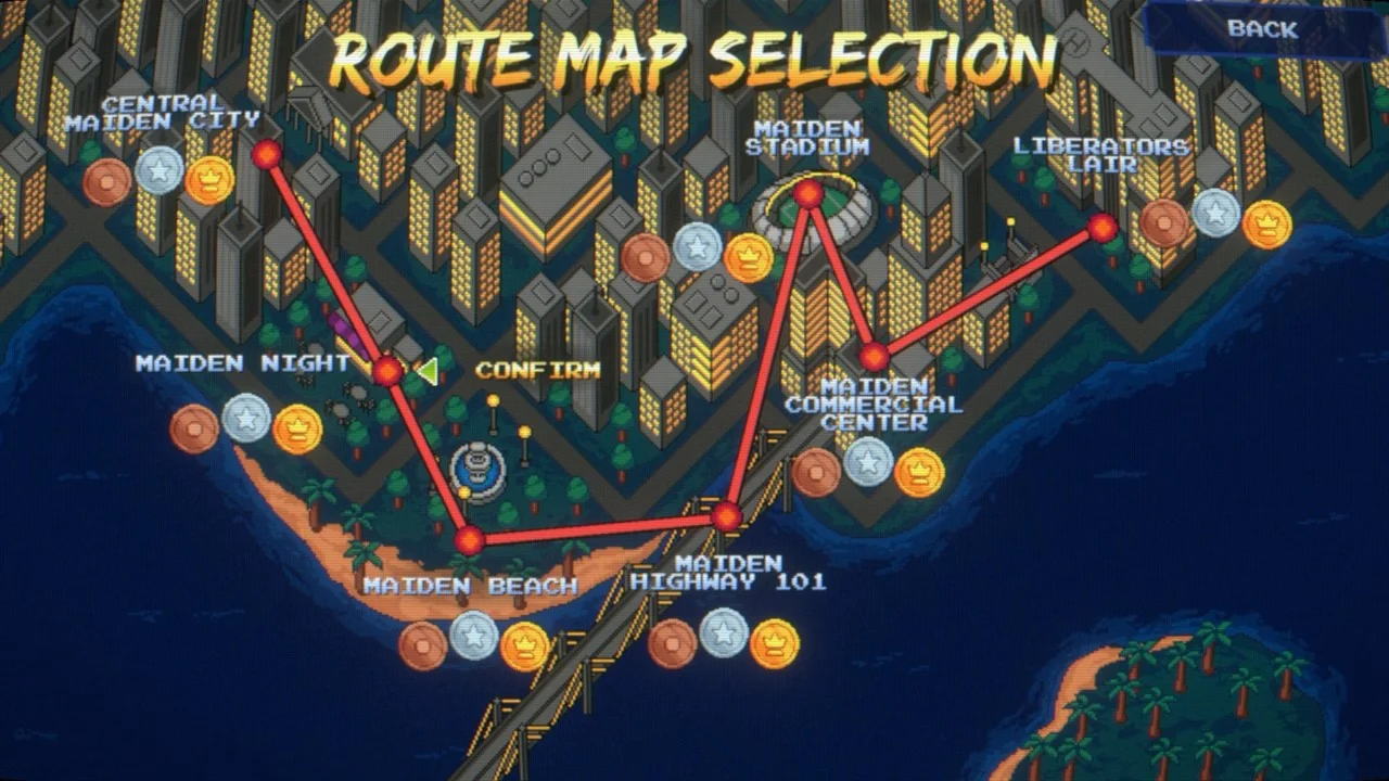 Maiden Corps — ретро-сайдскроллер в стиле beat 'em up, полный аркадного экшна и милых девочек- монстров. Выберите одну из стражей порядка и выходите на улицы, чтобы бросить вызов пышным бандиткам, открывайте новые наряды для вашей воительницы, подбирайте диковинные орудия, набирайте комбо и повышайте свой счёт, а также используйте навыки героинь во имя закона.