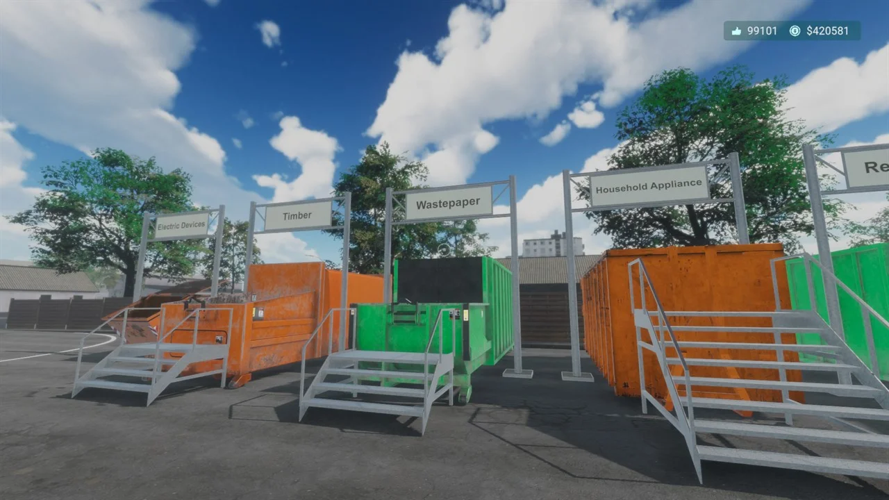 - Realistic containers and machines for different types of trash