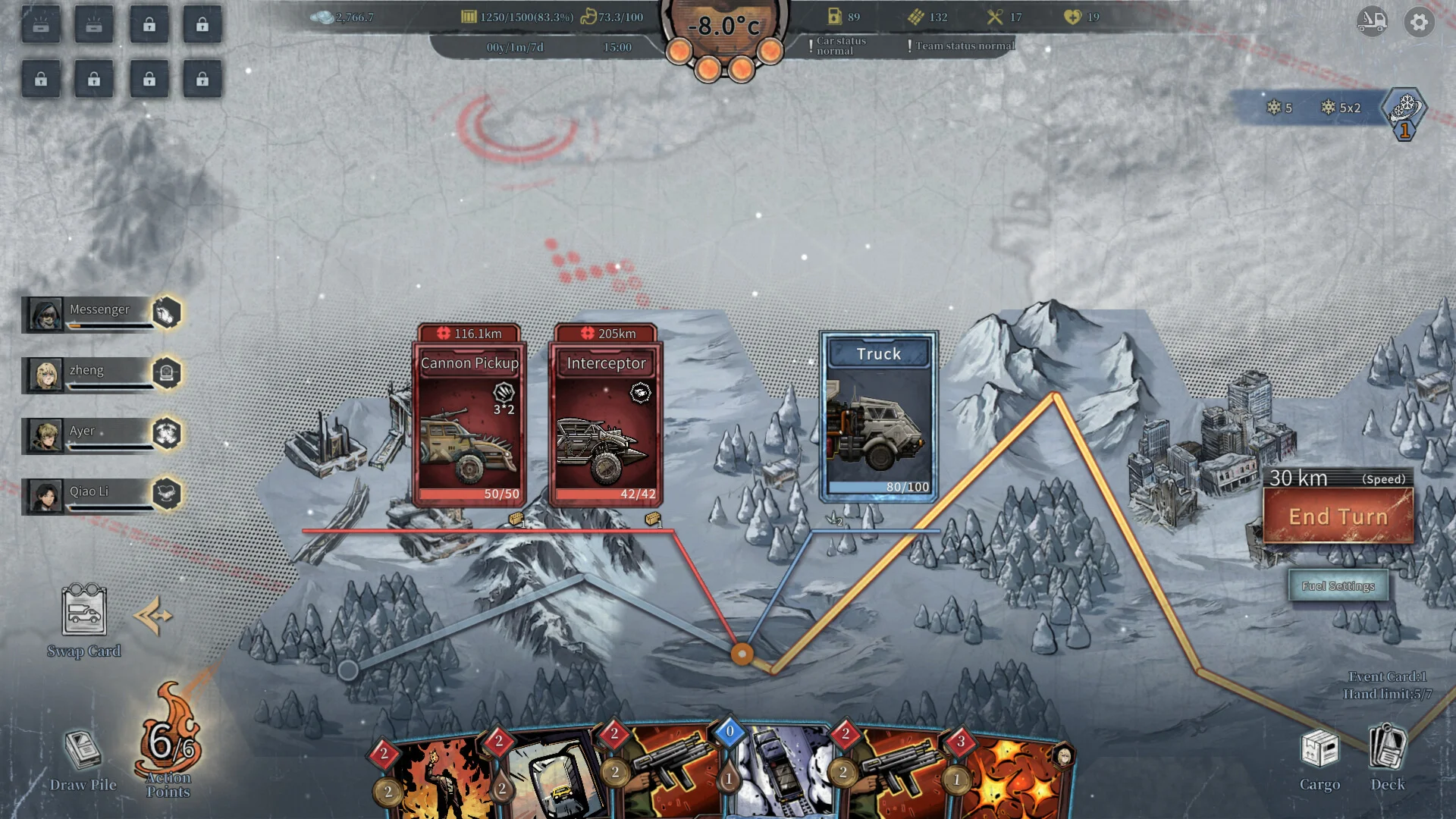 Snow Ash — это карточная торгово-приключенческая игра в постапокалиптическом пустошном мире. В этом покрытом холодом мире вы будете играть за “Посланника”, пересекающего метели и доставляющего грузы между различными убежищами.